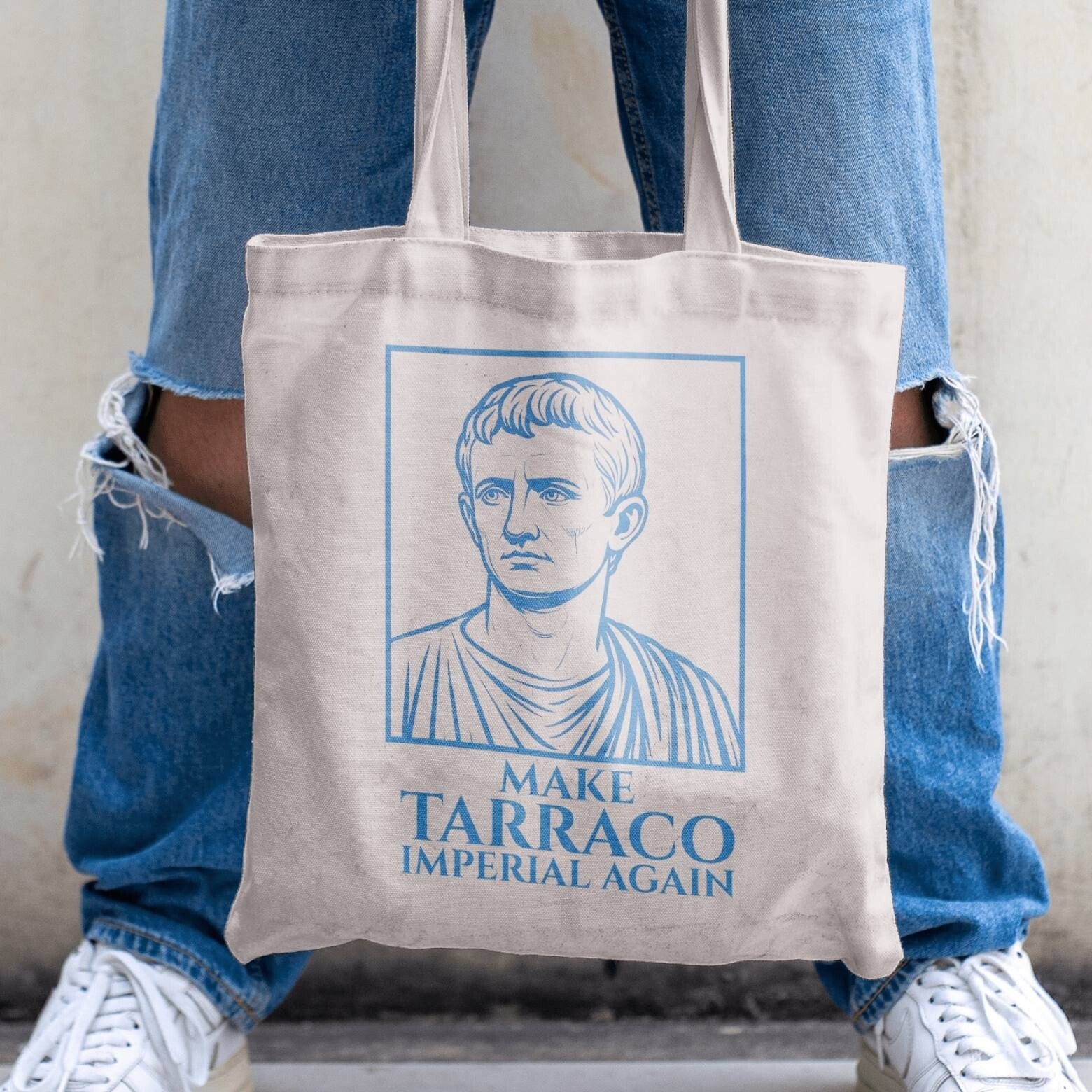 Aquesta bossa de cotó de 135 g/m² i 8l de capacitat és perfecta per al mercat del dissabte matí, una tarda a la platja o qualsevol aventura per Tarragona. Resistent, còmoda i amb el toc d'humor que ens caracteritza. Diguem adéu als plàstics!